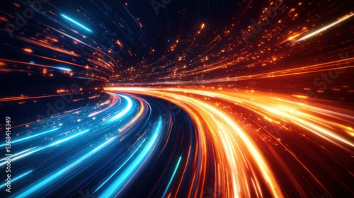 speed, data transfer, technology, digital, abstract, motion, glow, blue, orange, curve, flow, dynamic, energy, stream, futuristic