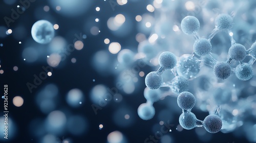 Abstract representation of molecules and atoms in a scientific and futuristic background, showcasing biotechnology and chemistry concepts.