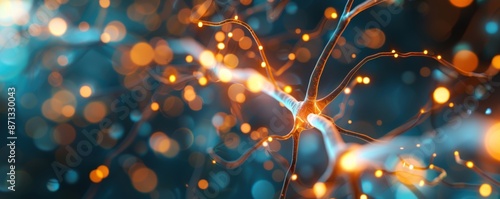 Abstract representation of neuronal connections with glowing synapses and a blurry background, highlighting the complexity of neural networks.
