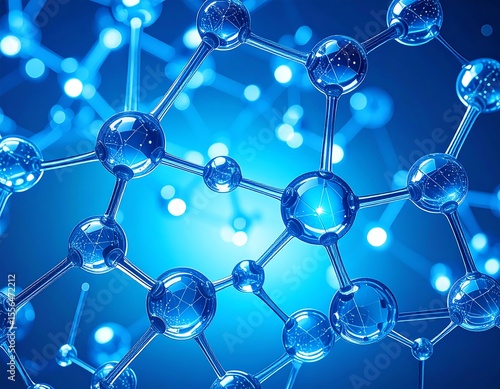 science, molecular, atom, structure, blue, light, three-dimensional, connection, geometric, crystal, network, complex, digital, design, modern, technology, illustration, scientific, abstract, pattern, sphere, link, glowing, intricate, detail, symmetry, depth, background, bright, futuristic