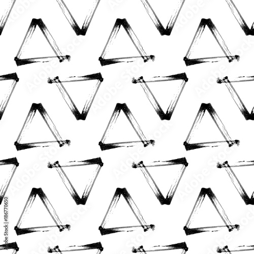 Abstract seamless hand drawn pattern. Modern grunge texture. Monochrome brush painted background. Texture with black triangles.