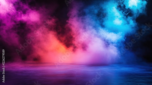 smoke, neon, light, background, abstract, colourful, vibrant, texture, design, wallpaper, scene, studio, dark, night, fog, vapour, haze, atmosphere, mystery, fantasy, purple, pink, blue, red, orange, glow, illumination, bright, moody, dramatic, effect, surface, floor, empty, space, environment, digital, graphic, illustration, art, image, photo