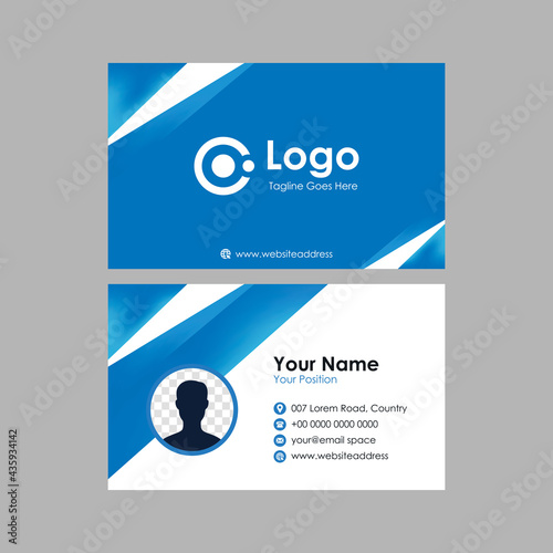 Abstract smooth business card with blue geometric mesh gradient background design, professional blue stylish name card with Photo Space template vector
