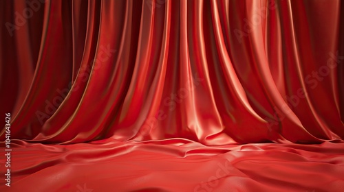 Abstract soft red silk fabric background. Smooth and elegant red curtain backdrop