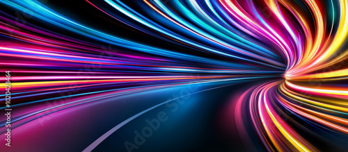 Abstract Speed: A mesmerizing abstract image of streaks of vibrant colors forming a tunnel of light, symbolizing speed, energy, and the concept of movement.