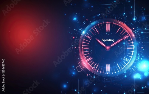Abstract speed and technology background with blue and red neon light, vector illustration of a digital clock in motion on a black background.