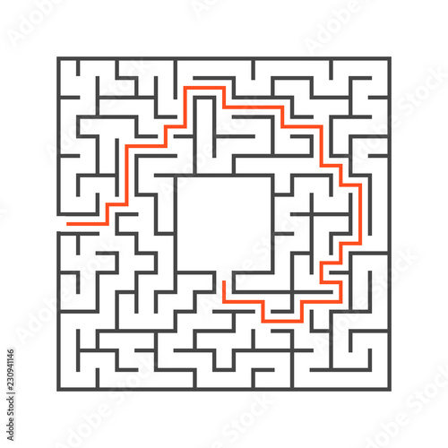 Abstract square maze. Game for kids. Puzzle for children. Labyrinth conundrum. Flat vector illustration. With answer. With place for your image. Find the right path.