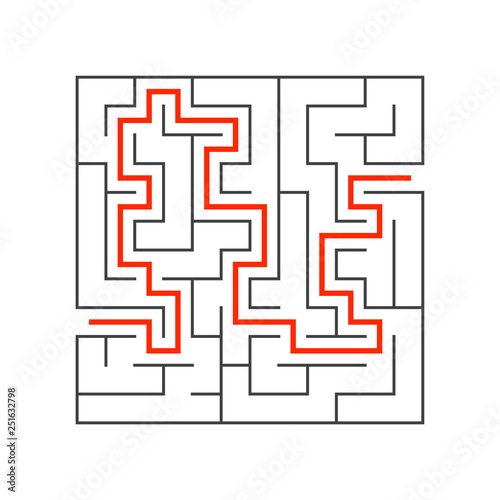 Abstract square maze. Game for kids. Puzzle for children. One entrance, one exit. Labyrinth conundrum. Flat vector illustration isolated on white background. With answer.