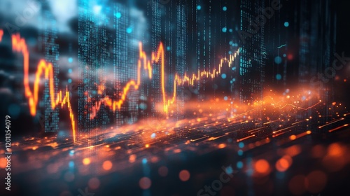 Abstract Stock Market Graph with Orange Line and Blue Digital Data