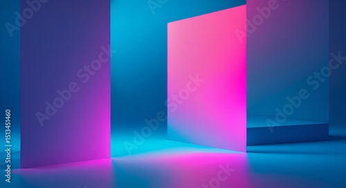 abstract, studio, space, geometric, shape, neon, pink, blue, lighting, modern, art, background, vibrant, colourful, design, futuristic