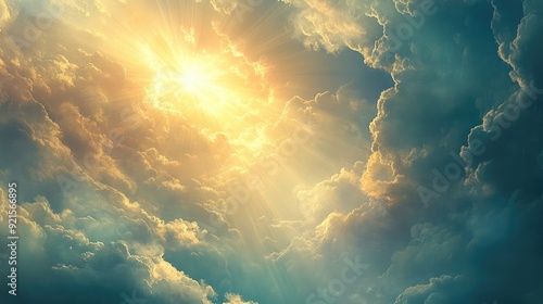 Abstract sun rays breaking through the clouds, illustrating the divine influence and hope of a new beginning