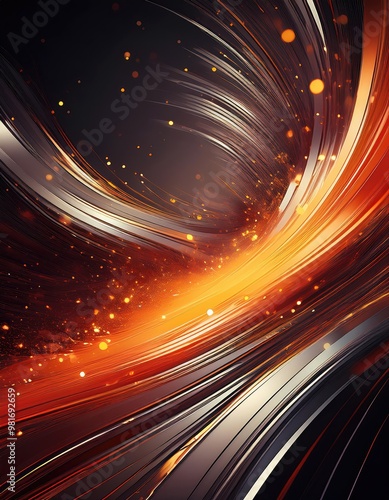 abstract, digital artwork, light, swirl, orange, yellow, black, background, warm, bright, spot, motion, circular, glowing, sparkle, dynamic, energy, futuristic, modern, design, pattern, texture, graphic, art, illustration