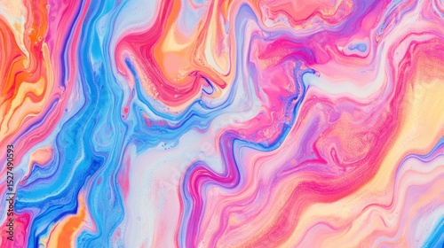 Abstract Swirl Pattern of Colorful Fluid Shapes with Vibrant Hues of Pink, Blue and Orange