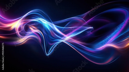 Abstract swirling light streaks in vibrant blue, purple and pink hues against a dark background.