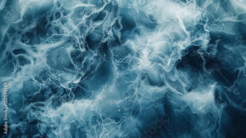 Abstract Swirling Ocean Patterns in Shades of Deep Blue and White Mist