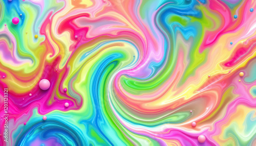 Abstract Swirling Rainbow Colors With Pastel Spheres
