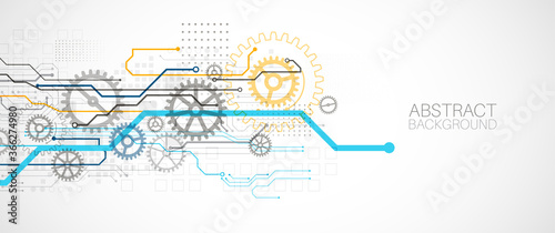 Abstract technology cogwheel concept. Circuit board, high computer color background. Vector illustration with space for content, web - template, business tech presentation.