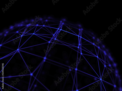 Abstract technology neural network and sphere geometry orb and polygonal lines and dots. Futuristic Technology, digitally generated image, 3d rendering