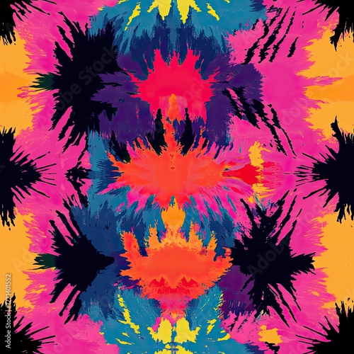 Abstract Tie Dye Bold Jagged Shapes and Bright Pattern Design for Fashion and Textile Projects