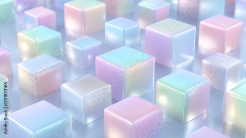 Abstract transparent shapes in neon hues, arranged in a mosaic, are well-suited for futuristic branding