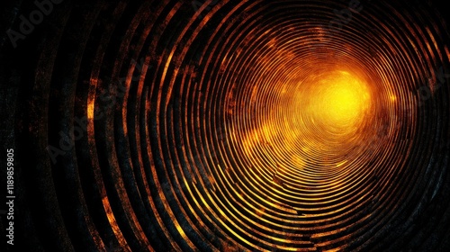 Abstract Tunnel with Radiant Light and Textured Rings in Vivid Colors and Shapes