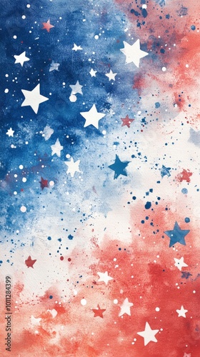 Abstract USA Patriotic Red, White, and Blue Watercolor with Stars for National Celebrations