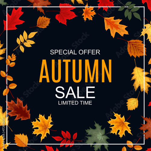 Abstract Vector Illustration Autumn Sale Background with Falling