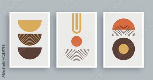 Abstract wall art painting with pastel colors background. Minimalist geometric elements and hand drawn line. Mid century scandinavian nordic style.