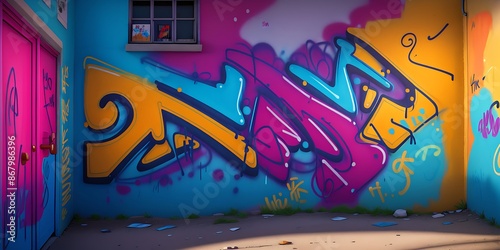 Abstract wall graffiti background. Street art graffiti texture with colorful stripes, and colorful spray paint stains, Abstract graffiti poster with colorful paint, paint splashes, graffiti, Artistic