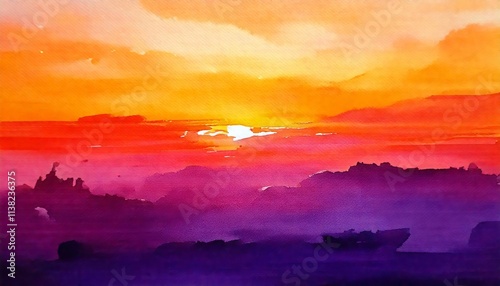 Abstract Watercolor Sunset Sky Background with Orange and Purple Tones