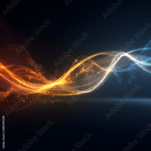 Abstract Wave Patterns in Vibrant Orange and Blue Colors on Dark Background