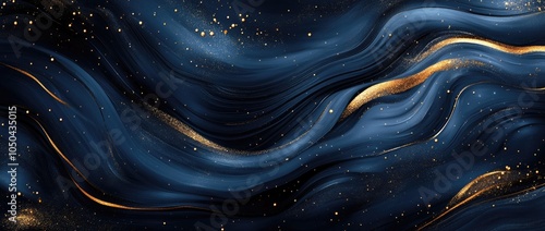 Abstract waves of deep blue and gold create a serene, elegant background.