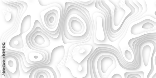 Abstract wavy line 3d paper cut white background. Topographic canyon geometric map relief texture with curved layers and shadow. Abstract realistic papercut decoration textured with wavy layers