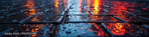 Abstract wet cobblestone texture, Stockholm rain , damp, city, asphalt