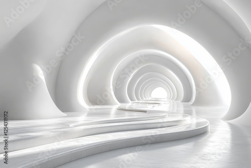 Abstract white backdrop with arches and tunnel for innovative product showcases.