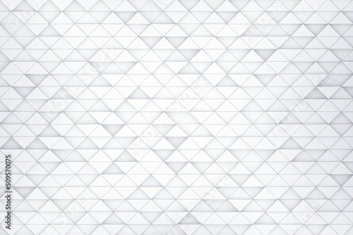 Abstract white background with triangles grid. Small mosaic cells random up down move 3d illustration