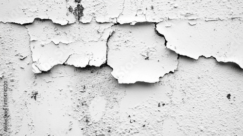 Abstract white concrete wall with chaotic texture and cracks symbolizing disruption and rawness, conveying urban decay and imperfection, with a rough, gritty surface that reflects disorder