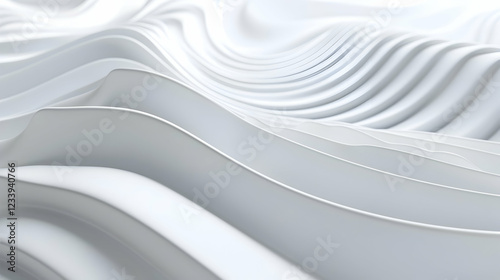 Abstract white waves create a smooth, flowing texture, evoking calmness and simplicity.