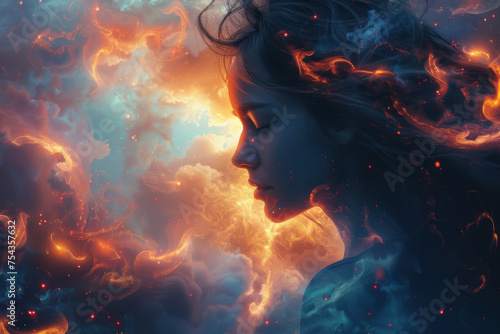 woman, mindfulness, calm, spirit, background, abstract, smoke, mind, imagination, concept, dream, colourful, fantasy, individual, effect, psychology, consciousness, surreal, idea, psychiatry, thought, metaphor, human, mental, self, memory, face, artwork, art, cognition, colours, creativity, soul, head, mystical, intelligence, psyche, girl, magic, hallucination, brain, fog, meditation, spiral, ai, light, flow, wave