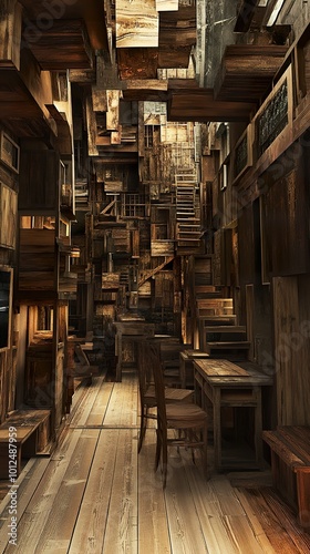 architecture, structure, woodwork, wood, design, dreamlike, digital artwork, abstract, surreal, art, imaginary, wood texture, wooden floor, interior design, fantasy, interior, surrealism