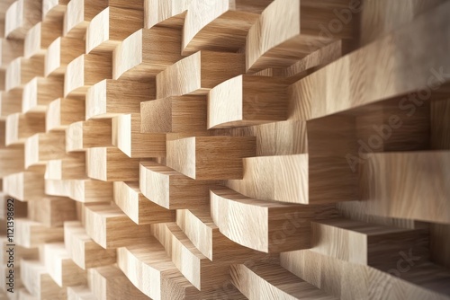 Abstract Wooden Wall with Interlocking Cubes and Curved Edges