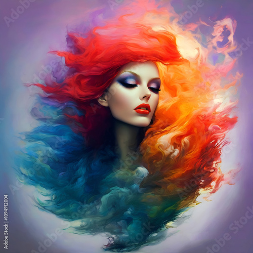 woman, beauty, hair, fashion, face, model, make-up, glamour, eye, red, art, person, people, feather, wig, coiffure, lip, party, elegance, sensuality, skin, 1, pink