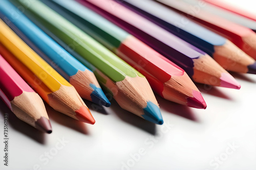 A-close-up-of-a-row-of-colored-pencils-on-a-white-surface-generative-ai-