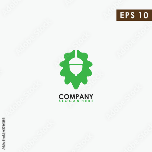 Acorn With Leaf Logo Design Vector Template. Modern Design. Vector Illustration.