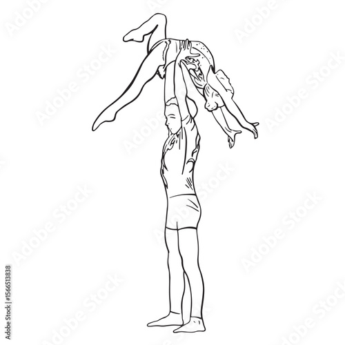 vector, illustration, vignetting, concept, isolated, acrobatic, balance, performance, acrobatic, performing, acrobat, gymnastics, young, drawing, silhouette, body, people, woman, girl, strength, female, activity, sport, exercise, person, flexibility, fitness, team, pose, white, beauty, aerobic, ballet, gymnastics, competition, graphic, cartoon, elegance, man, line art, success, hand-drawn, art, human, dance, rhythmic, signs, yoga, circus, action
