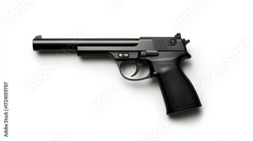 Action-packed scene featuring a handgun indoor setting photography minimalist environment close-up view concept of firearm aesthetics