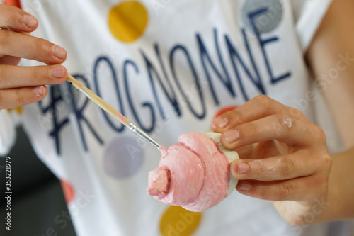 hand, party, white, paint, gift, closeup, activity, manual, brush, toddler, decoration, offer, hand-made, man-made, footmark, love, mother's day, patience, macro, damp, girl, fabrication, cupcake