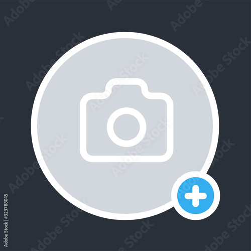 Add new photo color element. Social media button. Sign for web page, mobile app, banner, social media. Editable stroke.