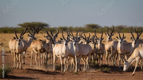 Addax Coexisting with Desert Wildlife, Showcasing Nature’s Balance