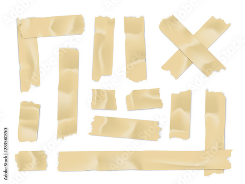 Adhesive tape set. Sticky paper strip isolated on white background. Vector illustration.